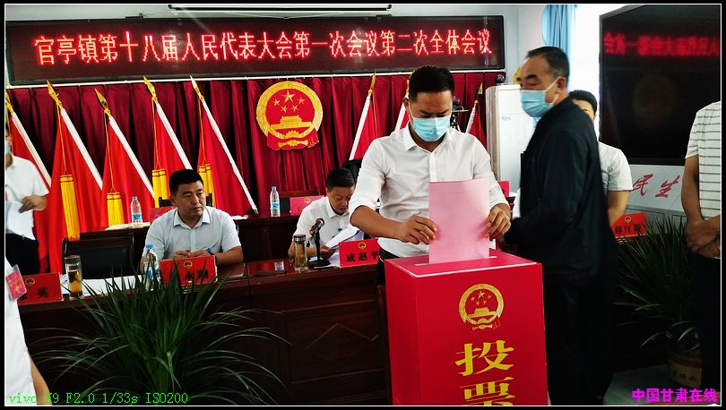在宕昌县官亭镇第十八届人民代表大会第一次会议闭幕式上,宣布了本次大会选举结果,表决了人大、政府和民政工作报告决议(草案),镇长张莉带领新当选人员进行了宪法宣誓,并作施政承诺,镇党委书记成赵平作总结讲话。