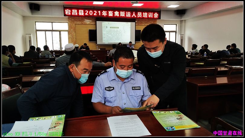 培训会上,集中学习了《农业农村部79号公告》、《动物检疫管理办法》、《甘肃省动物防疫条例》、《甘肃省动物经营运输防疫管理办法》、《中华人民共和国动物防疫法》及宕昌县重大动物疫病防控指挥部相关文件精神。邀请县公安局、城建执法局执法人员围绕贩运人员在贩运当中应当遵守的职责、注意相关事项等,结合案例进行了深入浅出的讲解和剖析。县动物卫生监督所对从事动物、动物产品经营、贩运人员备案登记,颁发《陇南市动物贩运人员培训登记证》,现场与经营贩运户签订“宕昌县动物经营运输防疫承诺书 。”让从事动物贩运人员明确了收购、经营、运输和贩运动物及动物产品中应当承担的法律责任,提高了贩运人员的守法意识。