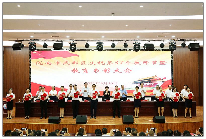 中国甘肃在线武都讯(通讯员 李圆丰)9月10日,武都区举行庆祝第37个教师节暨教育表彰活动,表彰了在教育教学工作中涌现出的先进学校和个人。活动中,表彰“教学质量先进学校”20所,“优秀校长”12名,“优秀班主任”100名,“优秀教师”120名。