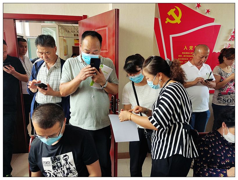 街道工作人员手把手教授参会人员注册“金钟罩”