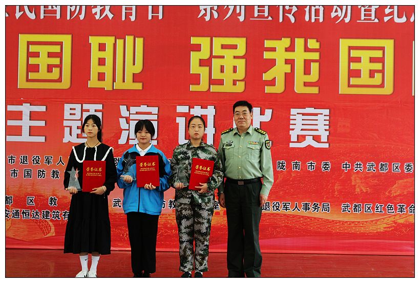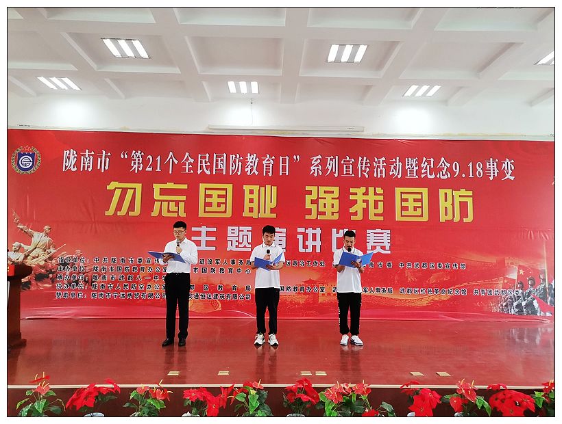 军地有关领导、学校师生共350人齐聚八一中学多功能大厅,共同参加“勿忘国耻,强我国防”主题演讲比赛。十位参赛选手精神抖擞、慷慨激昂,从亲身经历、历史事件、理想信仰、强军兴军、时代使命等多个角度,声情并茂地讲述了自己对军人、军队和国防的理解和看法。他们真挚的情感、澎湃的激情、深刻的思想、独到的见解赢得台下观众阵阵掌声,激发了现场观众们关心支持国防和军队建设的热情,展现了陇南学子心系国防、关注国防、建设国防的家国情怀。