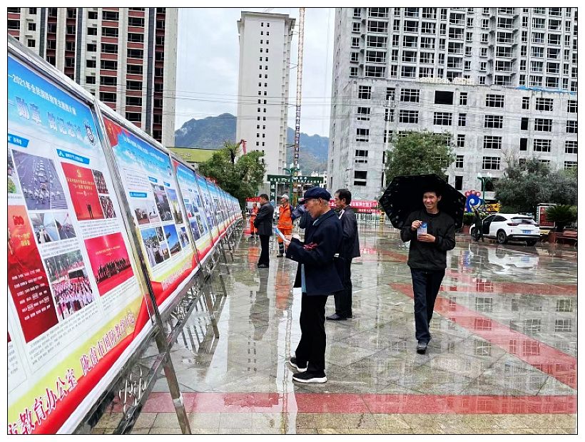 与会领导和群众在工作人员的讲解下,现场参观了国防教育展览。这次活动在抖音等平台同步直播,浏览量超过20万,现场共放发宣传手册5000余份,为群众义务讲解52次。