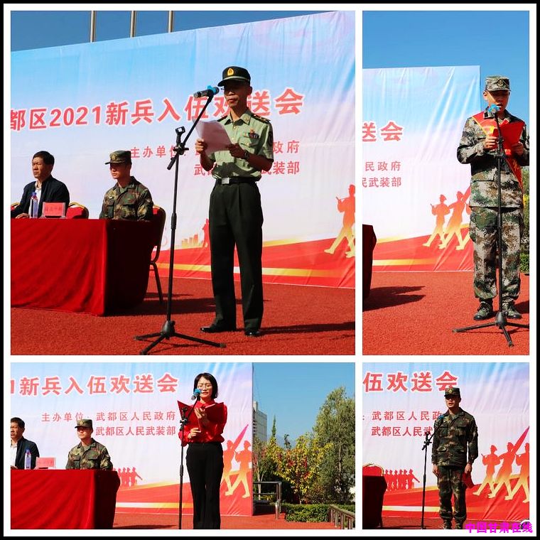 奋斗青春不负韶华,精彩蜕变破茧成蝶。欢送会上,新兵代表、新兵家长代表、接兵干部代表分别作了表态发言,从各自角度表达了对90名新兵的热切祝贺。“今天,我们终于穿上了向往已久的绿军装,即将去履行神圣的义务,此时此刻,我们的心情无比激动……”,汉王镇新兵李坤代表全体新兵战友,从学习、训练、服务、纪律四个层面表了决心,谈了感受,用自己的实际行动为军旗添彩,为家乡争光的赤诚心声,赢得现场的阵阵掌声。