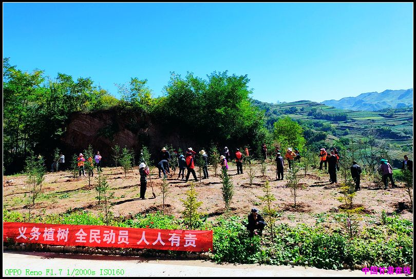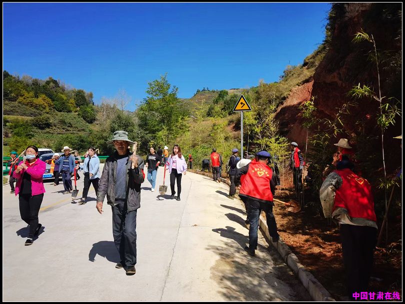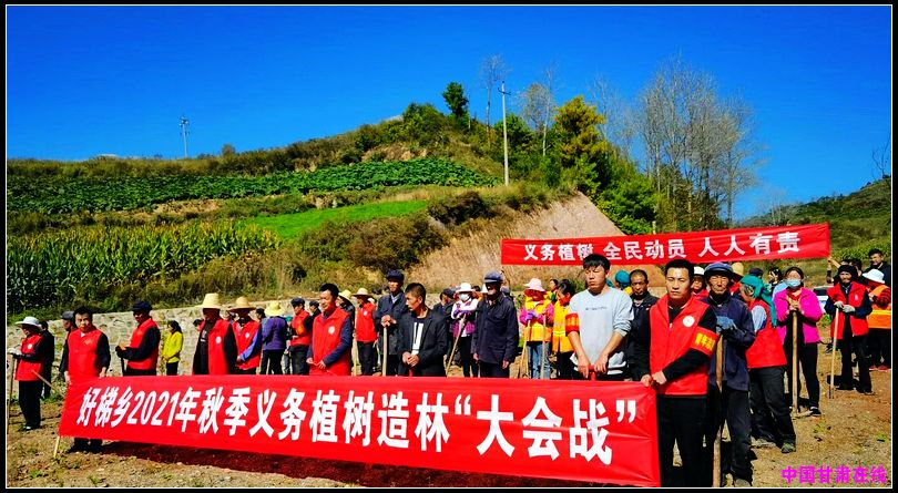 中国甘肃在线宕昌讯 你扶苗,我填土,再用脚一一踩实,每一道工序都一丝不苟…… 国庆前夕,宕昌县好梯乡组织百名乡村党员干部、新时代文明实践志愿者来到秋季造林点,开展全民义务植树活动。