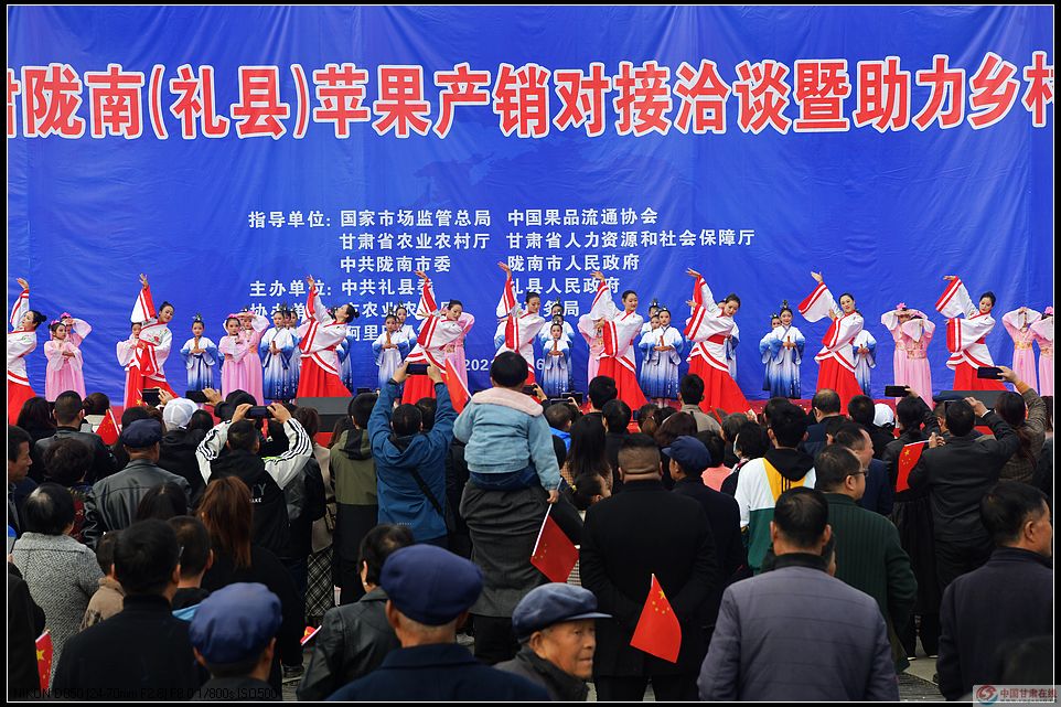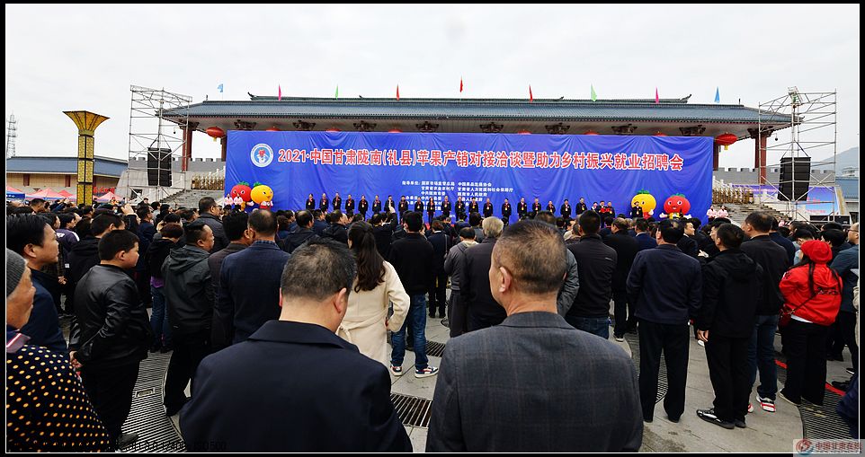 中国甘肃在线礼县讯(赵小春报道)大美金秋酿丰收,苹果飘香迎宾客。10月16日,2021·中国甘肃陇南(礼县)苹果产销对接洽谈暨助力乡村振兴就业招聘会在礼县举行。此次大会由中共礼县委、礼县人民政府主办,陇南市农业农村局、市商务局、阿里巴巴集团协办。大会为期三天,由开幕式、特色产品巡展、礼县农特产品销售发车仪式、苹果现场采摘体验活动、礼县苹果及农特产品销售签约仪式、礼县首届职业技能大赛等部分组成。