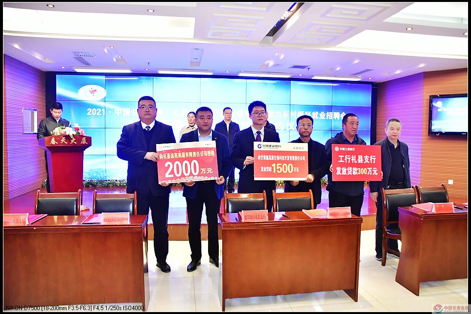 开幕式下午的礼县苹果及农特产品销售签约仪式上,6家银行机构与20家礼县苹果等企业金融签约金额9220万元,其中,现场发放贷款6家2470万元,贷款续贷4家3090万元(其中1家增信200万元),贷款授信10家3660万元。同时,还签约“礼县苹果”及农特产品营销协议6份,签约金额4731万元,购销“礼县苹果”及农特产品7880吨。通过购销协议的签约,“礼县苹果”及农特产品将远销北京、深圳、青岛、广东、湖北等地及孟加拉国,更好地拓展“礼县苹果”及农特产品在国内东部沿海及国外市场。