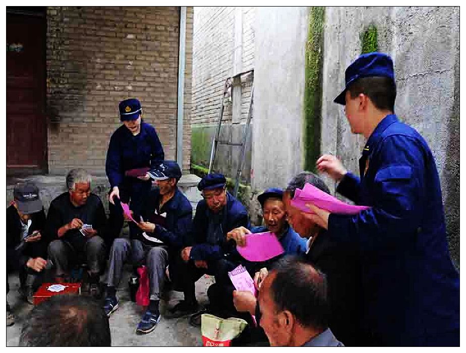 针对农村日常生活特点、荒草干燥、老人文化水平普遍偏低,消防安全基础薄弱的情况,大队宣传人员通过张贴消防安全宣传海报、发放《消防安全宣传手册》及消防安全常识单页等,主动上门宣传等形式,用通俗易懂的语言向老人讲解了农村家庭防火技巧、火警电话的正确拨打方式、如何逃生自救、初期火灾的扑救等消防安全常识。采用“唠嗑”的方式,提醒他们要注意防火安全。部分村民还就常见的油锅起火、煤气泄漏等问题向宣传人员咨询,针对个别不识字或看不清楚的老人及小朋友,宣传人员“蹲下去、弯下腰”耐心地为他们讲解消防安全知识,确保从老人到小孩都真正“知消防、懂消防、会消防、用消防”。