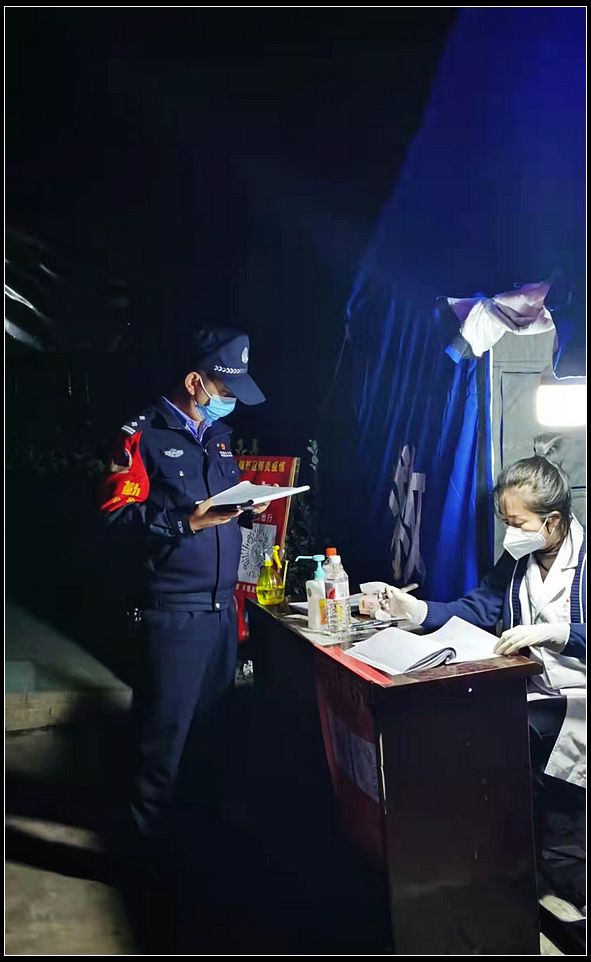 疫情如火、警令如山。自疫情防控工作开展以来,沙湾派出所负责人董彦武一直奔赴在疫情防控阻击战的最前线。自启动宕昌县疫情防控紧急预案以来,作为宕昌县公安局沙湾党支部书记的董彦武义无反顾的选择了使命,马上投进到当前这场没有硝烟的战“疫”中。董彦武说:“疫情有需、我必出征、带党徽、亮身份、当先锋!“他是这样说的,也是这样做的,带着对从警生涯的忠诚誓言,主动迎前,勇于担当,从白天到黑夜,坚守岗位,冲锋在前,安排部署强化整体防控、加强治安要素管控、公共安全监管力度、全面开展疫情查控工作,主动配合卫生防疫部门做好宕昌县东大门——沙湾镇进出人员的体温检测、信息登记、解释和疫情知识宣传工作。从严从实从细落实各项工作措施,全力以赴做好疫情防控安保维稳工作,义无反顾奋战在防控疫情的最前线。
