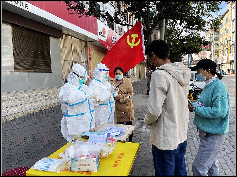 靠实责任,争做表率。各级党员干部全身心投入“疫”线,分兵把守、各负其责、各司其职,坚决做到守土有责、守土负责、守土尽责,抓紧区域协查,管控到位,同心协力防止风险外溢扩散。带头做好个人及家属核酸检测,积极组织本单位干部职工和居民群众到指定核酸检测点有序开展核酸检测。全县共设125个固定、流动采样点,全县所有持证医疗机构及基层卫生院共出动近600名医护人员,76个机关单位的800多名党员干部投入到宕昌城区核酸检测当中,在落实自身安全防护措施的同时,严格按照检测规范流程进行登记、信息核对、核酸采样,环境消杀等工作。目前已开展两轮核酸检测,已累计完成核酸检测14万多例。