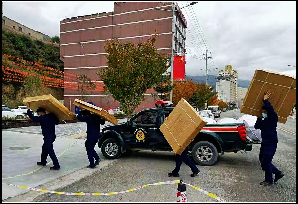 中国甘肃在线自新冠疫情发展以来,陇南宕昌县消防救援大队出动15名指战员第一时间赶往防疫物资储存点进行物资搬运,守点值班,用自己的实际行动支援全县“抗疫”战争。