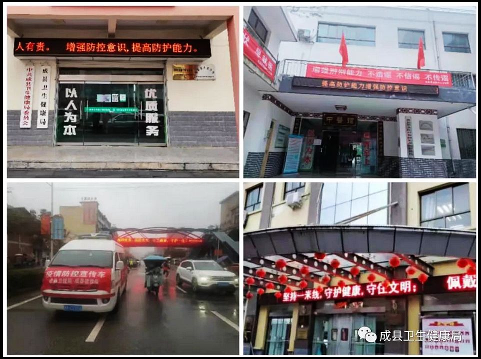 中国甘肃在线成县讯(通讯员 刘建军 杨平平) 走进成县的大街小小巷,随处可见疫情防控宣传标语、宣传海报,各类电子屏滚动播放着疫情防控宣传标语,处处播放着健康温馨提示,大街上流动宣传车“大喇叭”,沿城区主次干道不间断、流动播放疫情防控通告、科普知识、防控措施等,疫情防控的各类信息悄无声息地钻入群众耳中、心中、脑中,内化为群众科学防控的自觉行动。