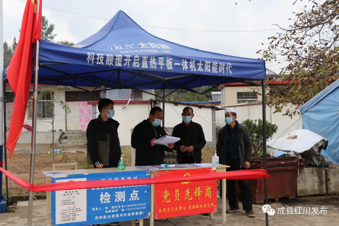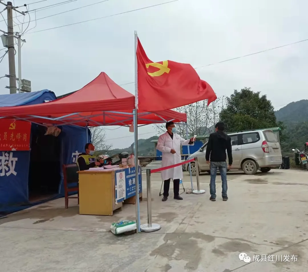 红川镇吕坝村与徽县栗川镇相连,每天跨县过往车辆及人员频繁,为扎实做好疫情防控工作,我镇在吕坝村烟东梁设立县界疫情防控检测点,镇村干部、医务人员、交警、志愿者开展24小时执勤值班,对过往人员、车辆严格落实排查登记、体温检测、查验健康码、行程码、宣传劝导等工作,做到不漏一车、一人,管控全覆盖。疫情就是命令,防控就是责任,红川镇紧盯疫情防控关键环节,把红色堡垒筑在阻击“疫情”的最前沿,强化先锋模范意识,主动履职尽责,在防疫一线践行初心、勇担使命。