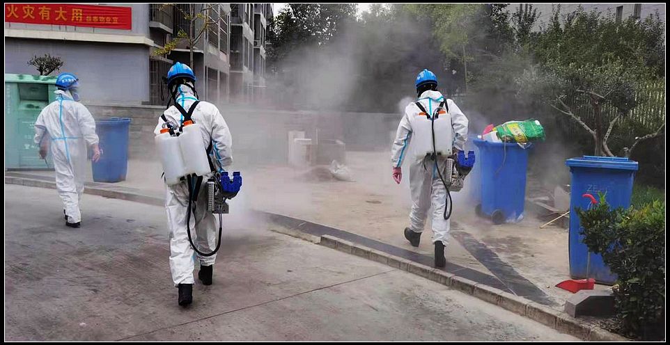 10月25日,记者在灰崖子武都高速路出口和钟楼滩幸福小区看到,陇南蓝天救援队消杀突击小组组织的数十名消杀人员统一身穿防护服,佩戴防护面罩,使用弥雾机、操控无人机等专业消杀设备,按照统一指挥对收费站、车道及小区内各道路、垃圾桶等进行地毯式、无死角、全方位消杀。