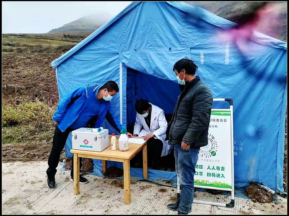 在草坪乡崖上村,夜里温度已经低于零摄氏度,路口的帐篷都已经冻得嘎嘎作响,在该村监测点,村支部书记王德寿和该村包村干部潘军依然坚守着。潘军一边搓着冻得通红的手,一边告诉笔者,“监测点上不敢离人,冷一点没啥,把进村的外来人员登记好,查验好,不要出现什么遗漏,冻点没事的。”