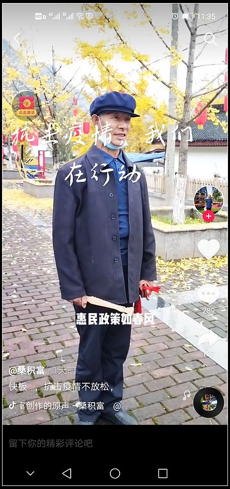 当被群众点赞时,桑积富总是平淡的说“身为共产党员和退役军人,疫情防控我有义不容辞的责任,上年龄了,我就用快板的方式给大家做做宣传,为抗击疫情出点力”。