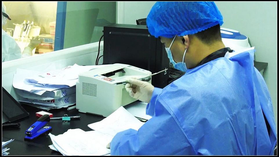 在疾控中心核酸检测实验室,连同科长冉茂盛在内共10人,分为三个小组,24小时轮班与此轮疫情发生以来,宕昌县疾控中心核酸检测室的灯一直没有熄灭过。检测室平均每天接收样品180份左右,最多时一天接收200多份样品。除了检测样本外,检验科所有人员还承担了一部分核酸采样工作。