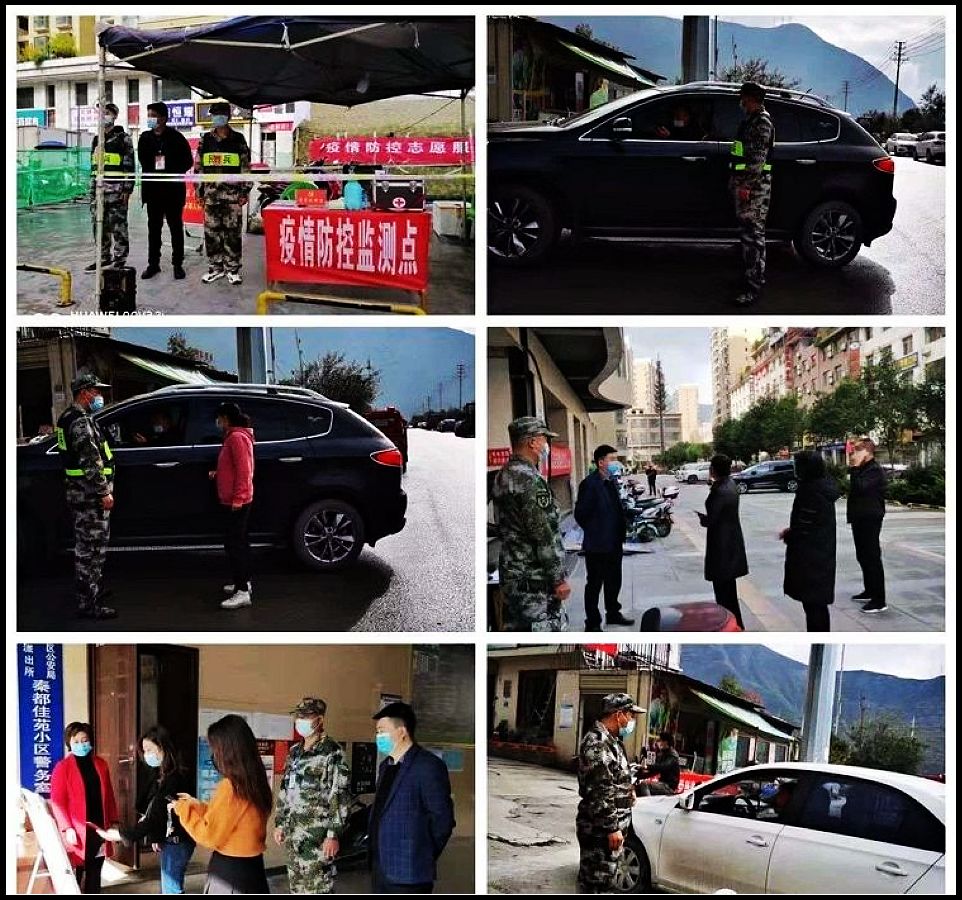 东江镇11名基干民兵在武装部长王陶陶的带领下,分散在8个社区,负责重点区域消杀、摸排盘查重点人员、搬运物资等。退伍军人、东江水社区支部书记李辉主动要求白天负责中高风险地区人员核酸检测,晚上在疫情监测点值班值守,诠释着退伍不褪色,换装再出发的军人本色。