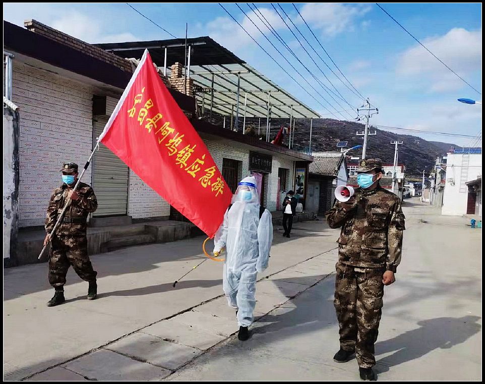 平时为民,战时为兵。自疫情防控以来,阿坞镇民兵在县人武部、镇党委政府的领导下,全员出战、主动出击,迅速投入疫情防控一线。他们做 “宣传员”,宣传防疫知识、分发防疫传单;做 “助理员”,协助核查人员体温、来往轨迹;做“服务员”,代购生活用品、处理急事难事。