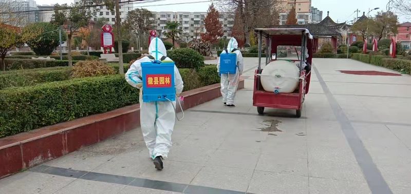 徽县讯(通讯员 尹辉东 郭鸿飞)身穿白色防护服、手持消杀喷雾器,在公园绿地、道路巷道、广场地带、酒店商场、门店街道、居民小区、河道休闲广场……当这个城市按下“暂停键”时,全面消杀防疫按下了“加速键”,一个个“逆行”防疫一线的身影成为了最美的流动风景线,这就是徽县园林局“党员突击队”进行拉网式消杀防疫的感人场景……