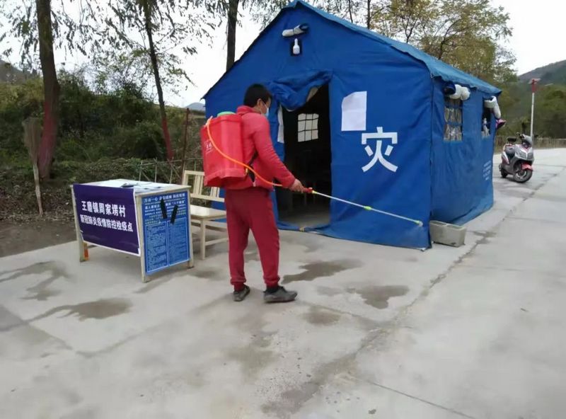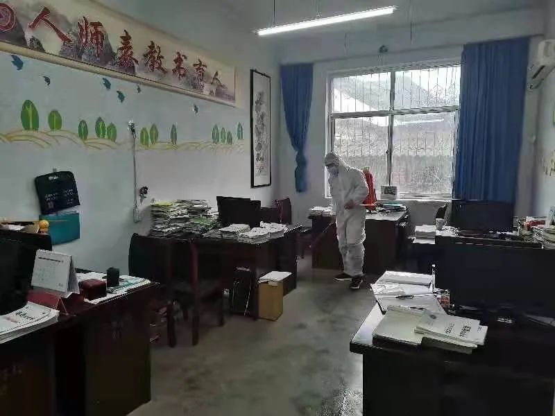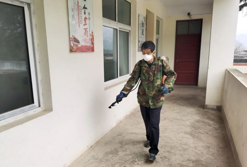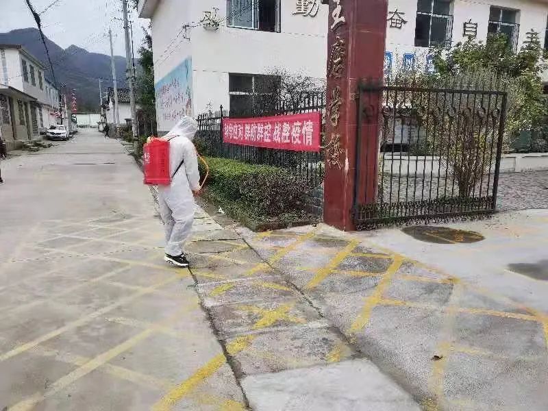 工作人员重点对单位办公室、监测点内外、过道楼道、村道小巷、房前屋后、室内室外、广场路面、医疗机构、学校教室、食堂、餐馆农家乐等公共场所人口聚集区域实施消毒杀菌。