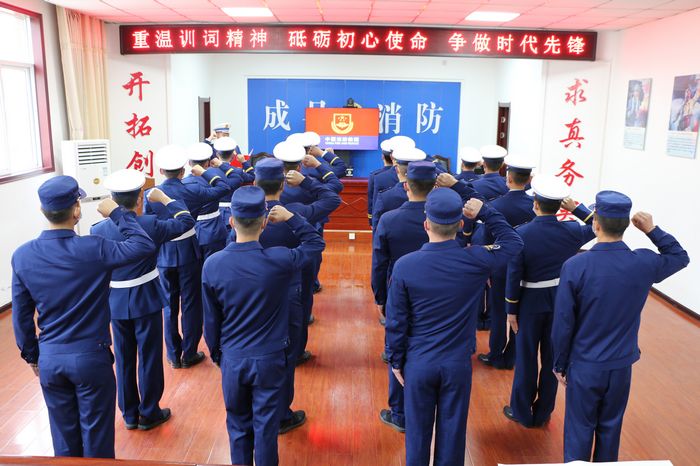 2018年11月9日,习近平总书记为国家综合性消防救援队伍授旗并致训词,为建设现代化消防救援队伍指明了前进方向。为激发指战员的消防救援事业荣誉感,进一步提升指战员的使命感、责任感,锻造能吃苦、能战斗的消防救援队伍,11月4日上午,成县消防救援大队举行了重温入队誓词宣誓仪式活动。