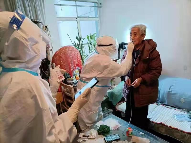 从早上7点开始,晚上8点结束,13个小时连轴转。在有效的工作时间内,为了提高工作效率,他们饿了吃简餐、渴了尽量不喝水、累了再坚持。采样中,遇到行动不便不能到集中采样点的人员,他们上门采样,严格做到不漏检一人。核酸检测一套流程重复无数次,腰酸背痛,腿脚麻木、全身湿冷……虽然很辛苦,但他们一丝一毫不松懈,保质保量完成任务。