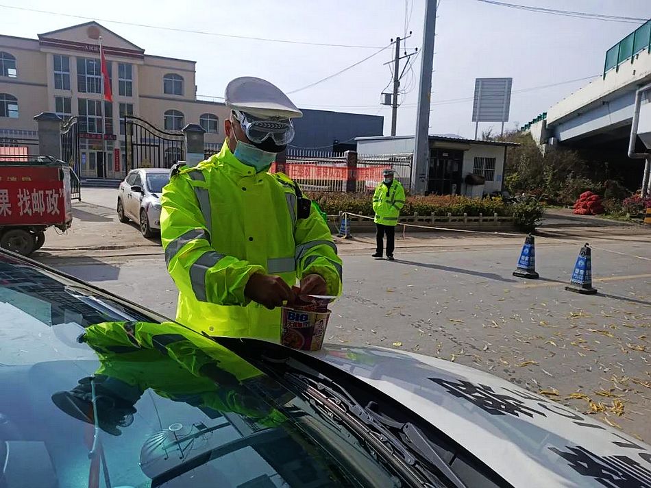 11月1日,夜幕降临,在瑟瑟的秋风中,笔者采访了正在盐官镇西大路高速路桥下马路值勤的盐官交警中队陈龙副队长和郑豆豆女警官。冷风中,他俩拉起警戒线,对过往的抗疫工作车辆认真查看,对往返的城内的车辆和行人耐心进行思想工作和劝返。露天下的椅子上放着的干馍馍顾不上吃,电壶沏出来开水顾不上喝又凉了。