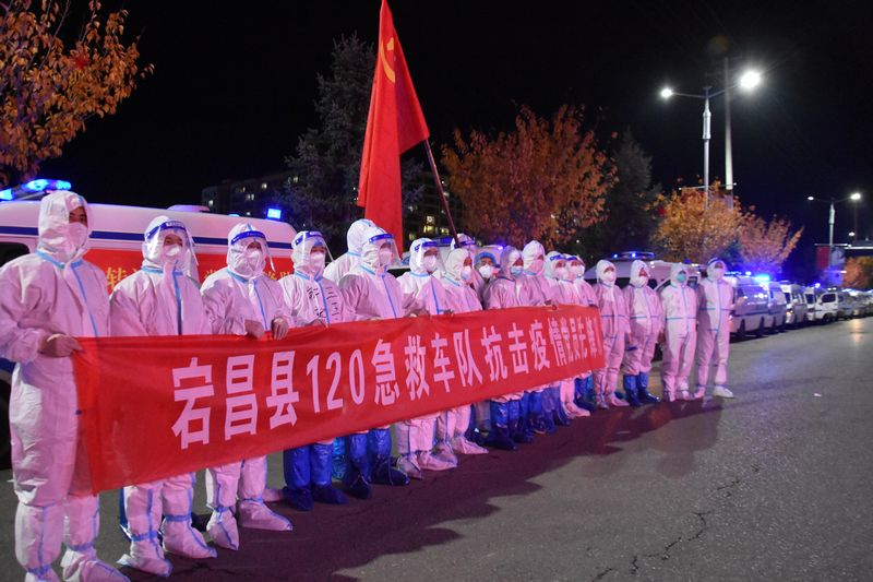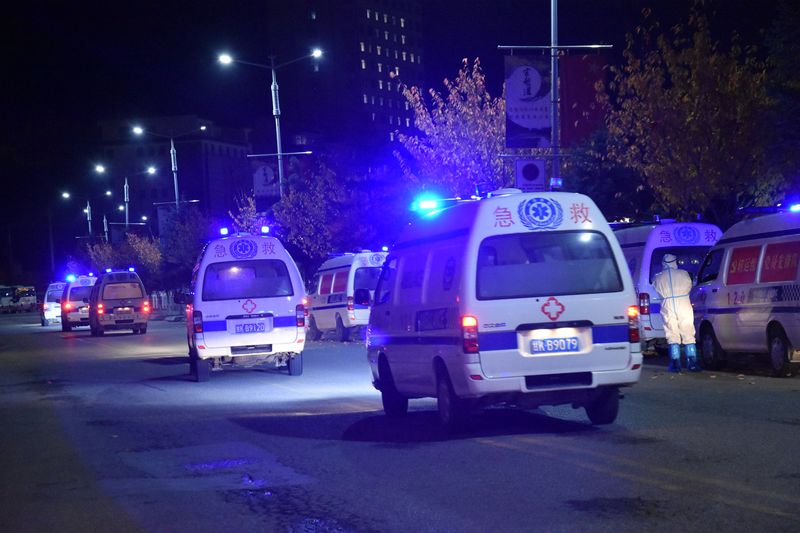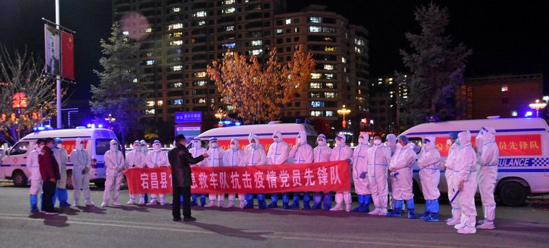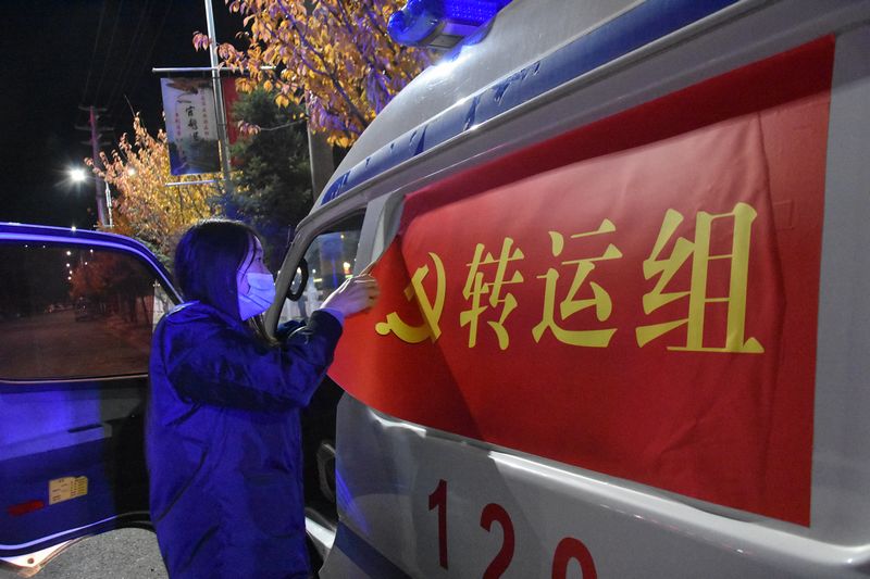 10月25日晚上,宕昌县的23名基层医疗机构党员驾驶着23辆120救护车闪着警示灯疾驰驶过,排成长龙宛如“星河”,向城周边集中隔离点转运重点人群。