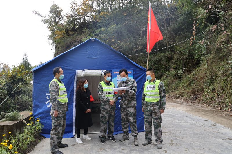 文县,位于甘肃省最南端,与四川、陕西省交界,地处秦巴山地,是甘肃的南大门。此次疫情防控工作以来,文县民兵充分发挥人熟、地熟、情况熟,就地、就近、就快的特有优势,在抓好自身安全防护的同时,积极参与群防群治,配合公安、运管、医务人员做好疫情监测、排查、预警等工作,形成了既各司其职又密切配合的防控工作格局,主动打好疫情防控阻击战。