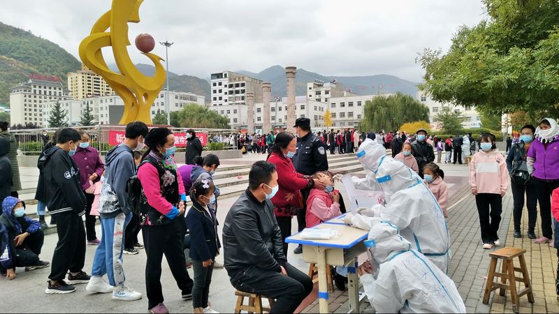 请广大居民在核酸采样期间全程佩戴口罩,有序排队,不扎堆、不聚集……。从10月22日开始,宕昌县在全县范围开展全员核酸检测。面对疫情防控需要,筑牢疫情防控堡垒,保障全县人民生命安全和身体健康。