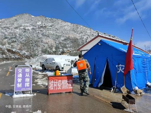 11月7日,入冬之时,寒潮来袭,在海拔2300米的武都区马营镇,气温骤降到零下10度,云上马营变成雪中马营。在该镇贾阴坡村疫情检测点,苏小斌和往常一样,排查人员,测温验码,查杀消毒,宣讲知识……