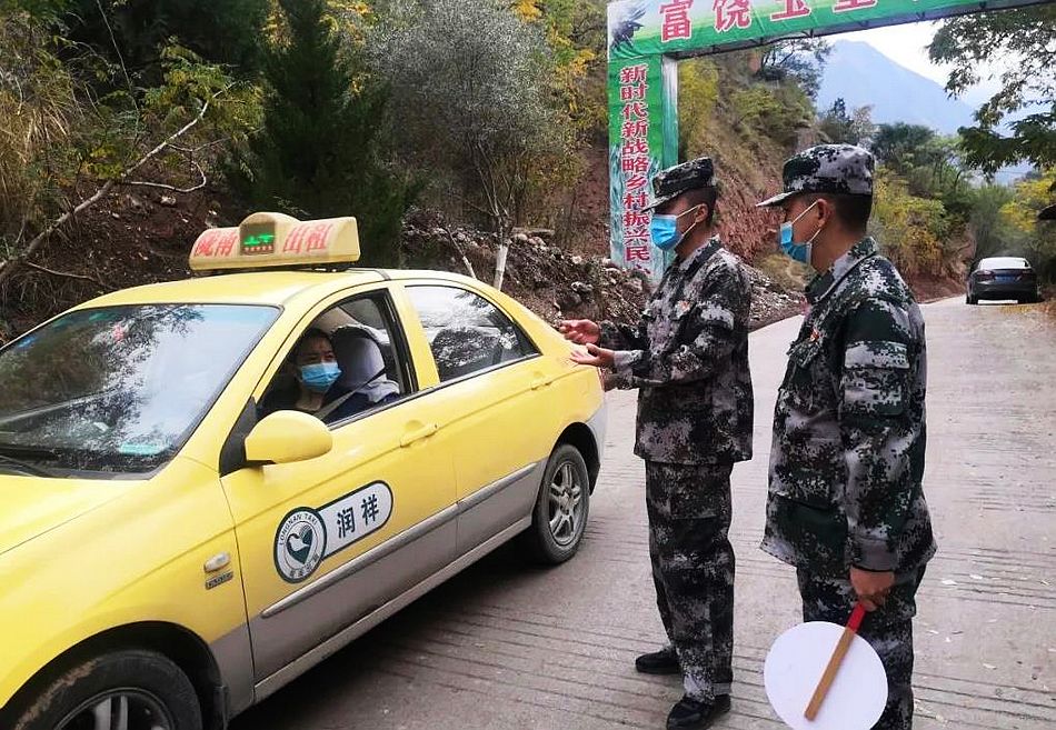 中国甘肃在线武都讯(通讯员 李剑超)“请出示一下健康码和行程码!”、“请配合测量一下体温”、“请带好口罩,平时勤洗手”。这是玉皇乡民兵防疫应急分队民兵冯乐这段时间每天说得最多的几句话。