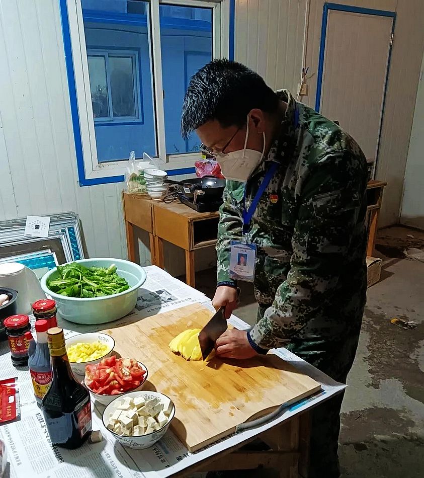主动作为 他是最可靠的后勤“服务兵”。他既是各单位应急物资最可靠的后勤保障,也是同事眼里中后勤“服务兵”,单位同事每每看到值完班,回到单位的申俊杰,就知道大伙有口福了,原来申俊杰除了是“装卸工”“司机”外,最近还认领了一个新身份,那就是改善全单位在一线奋战同事伙食的厨师。受疫情影响,饭店停业,忙碌在一线的同事们在饭点时只能吃泡面充饥,单位领导决定在单位起锅灶,保障全局值守同志的伙食。申俊杰每日在忙碌完一线工作后,一有空闲的时间,就会为大家做一锅热气腾腾的饭菜来改善伙食。