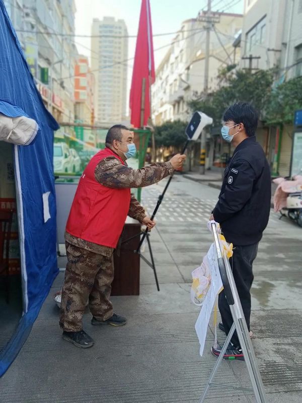 初冬的徽县蓝天打底,白云作伴,严峻的疫情为徽县按下了暂停键。街巷空旷、乡野静谧。这幅静态的画面,不时地被几个忙碌的身影打破。步履匆匆,手拿测温枪的80后丁渤便是其中之一。