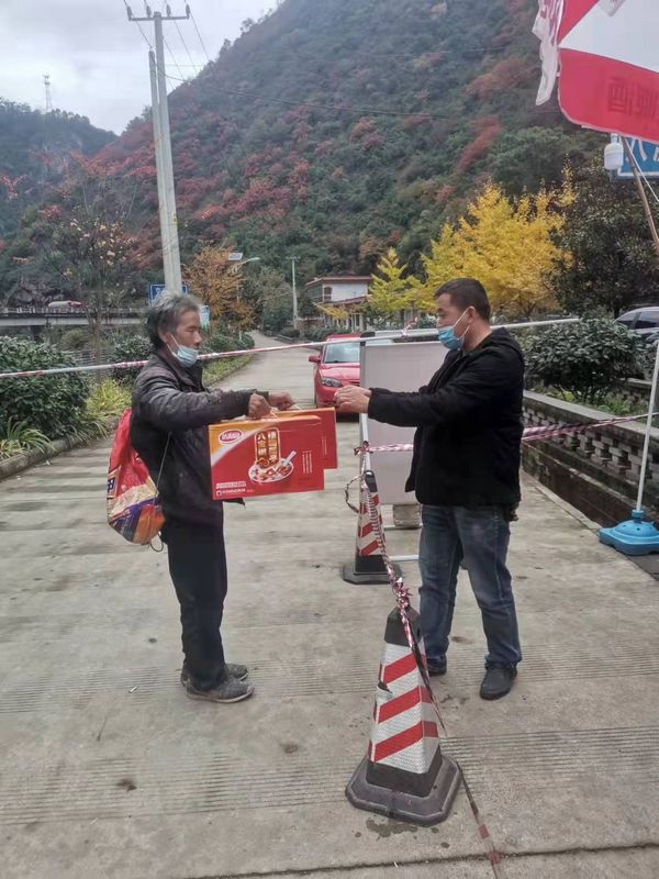 10月31日黄朝华和往常一样在检查点执勤时突然听到:“你好,黄书记,赶快和同志们来喝一点我家自己熬得八宝粥。”只见一位戴着口罩、提着篮子的老人一边大声吆喝着,一边快步向检测点走来。近一看原来是尖崖社的李大爷,他放下篮子进行了测温、登记,就将热乎乎的粥递到了黄朝华和其他同志的手里。“他们为了我们的健康,连日驻守值勤,非常辛苦!忙时,连一口饭都吃不上,我就想尽一点自己的微薄之力,给他们送些自家熬的热粥,也算是为疫情防控尽一点自己的微薄之力吧!”老人激动地说。