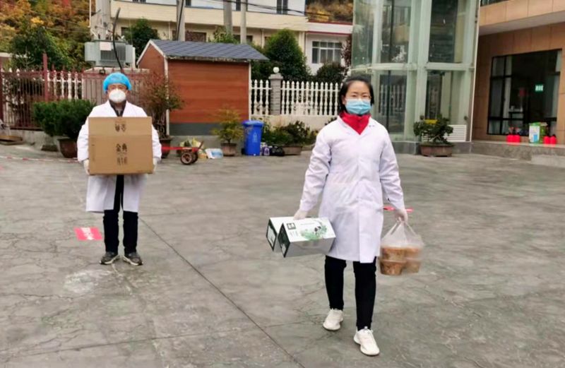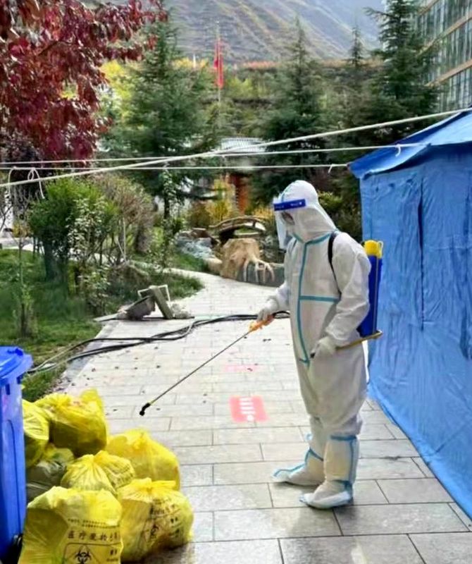 当天晚入驻隔离区后,翟龙忠开始进行信息采集和流调,并制定相关制度、流程和工作记录表,建立与隔离人员的微信群,进行心理疏导。平时为隔离人员送餐送药,以及生活必需品,进行各种资料信息的收集、整理和制作台账,隔离区消毒,垃圾的分类、消毒、转运等工作。