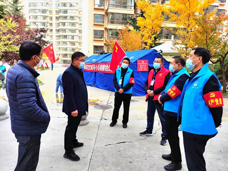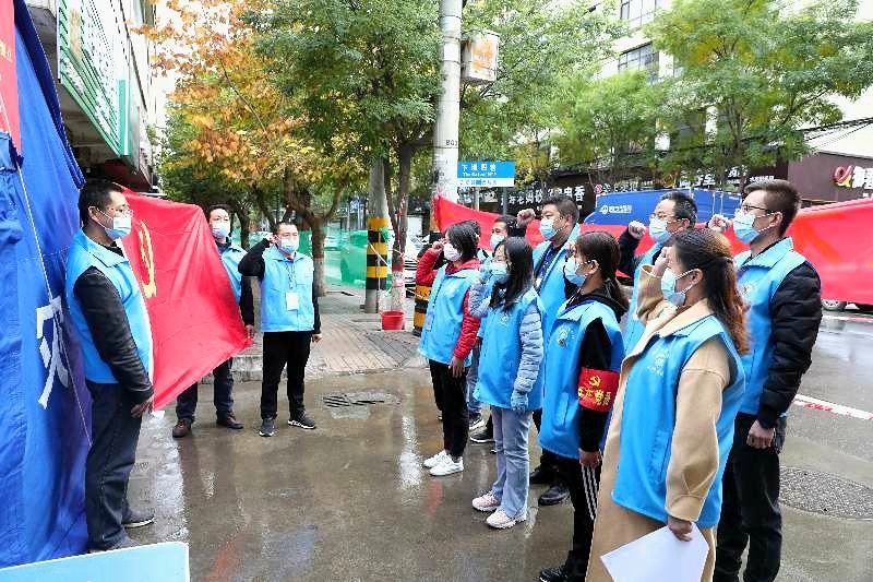 10月21日凌晨,全体党员紧急集结,通知会议,到各核酸检测点协调组织开展居民群众核酸检测工作。随后选派12名党员主动下沉到大巷道口和中恒嘉园卡口疫情防控最前沿参加值班值守,与社区、小区值班人员倒班轮换全天候值守,做好出入小区人员的排查登记询问、外来人员的说服劝导,卫生防疫防护宣传、群众核酸检测秩序维持、手持喇叭喊话提醒等工作,当好楼宇院落的“守门员”,共同创建“无疫小区”,大家以一抹鲜亮的“志愿蓝”助推疫情防控措施落实落细。