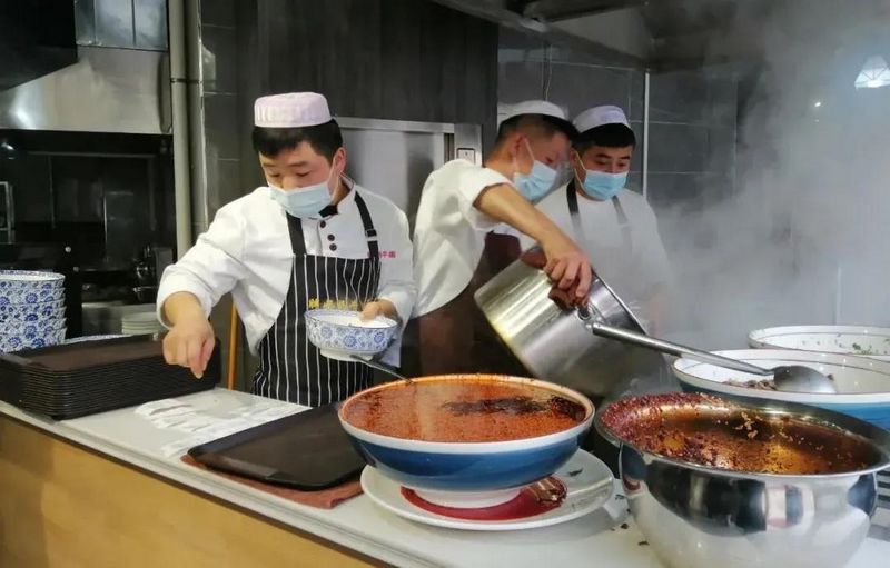 人间烟火气,最抚凡人心。记者在牛肉面馆看到,拉面师傅正在和面拉面,工作人员动作熟练的将白萝卜片、蒜苗放入一碗碗煮熟的面中,再浇上油亮亮的油泼辣子,因为重启营业的牛肉面店还尚未恢复堂食,仅提供外带服务,顾客们已自觉排起了长队。