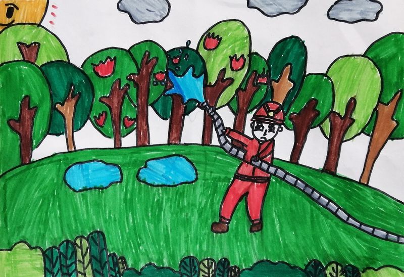绘画内容以消防员和消防故事为主题,让同学们充分发挥无穷的想象力,制作以主题鲜明、消防元素突出、消防知识表述准确、构思独特新颖、富于美感的消防绘画作品。此项活动也得到了学生家长们的大力支持,在家长和辅导老师的悉心指导下,大家纷纷拿起画笔,用自己的心灵感悟消防,用自己的小手描绘消防:有的为消防官兵设计了高空灭火装备、新型消防车;有的描绘了消防官兵勇战火魔的壮烈场面;还有的勾勒出了消防员高大威武的良好形象……学生们用丰富的想象和缤纷的画笔表达了自己对消防安全的认识和理解,在他们的笔下,一幅幅情感充沛的绘画作品被赋予了鲜活的生命、充满生机,深深地体现了孩子们对消防安全的领悟和对消防员的敬佩,潜移默化之中提高了孩子们的消防安全意识。