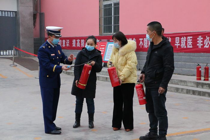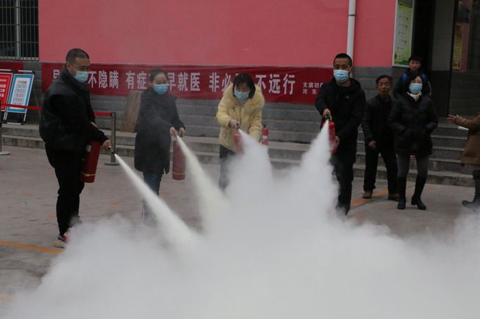 培训中,宣传员以典型校园火灾案例和冬季校园火灾特点为主要内容,深入浅出地讲解了火场疏散逃生自救以及如何报火警、如何使用灭火器等消防常识。对教师们提出的疑问一一进行了耐心解答,全体教师在轻松的氛围中接受了安全警示教育,进而使教师们近距离的了解消防、学习消防、热爱消防。最后,宣传员运用四字口诀“提、拔、握、压”向师生们讲解了灭火器的使用方法及操作步骤,并亲自指导教师们进行现场实操演练,大家踊跃参与,瞄准熊熊燃烧的火焰根部一阵“扫射”,“大火”迅速被扑灭。通过与消防员面对面交流,使师生们对消防工作有了更深入的认识和了解。