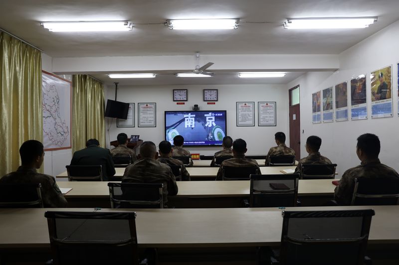 12月13日是第八个南京大屠杀死难者国家公祭日,上午10点,公祭仪式正式开始,全场肃立,奏唱中华人民共和国国歌,向死难者默哀,文县人武部全体人员同步参加央视直播公祭活动。