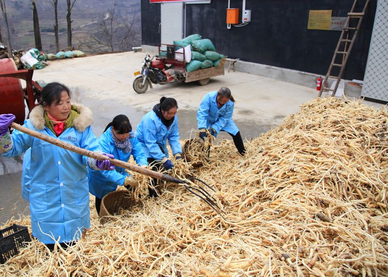 隆冬时节,天寒地冻。在距离成县县城23公里的鸡峰镇金葡村同谷家裕中药材种植合作社加工基地,却是一派热火朝天的繁忙景象,来自周边村镇的20多名工人正在紧张有序地对中药材桔根进行粗加工。