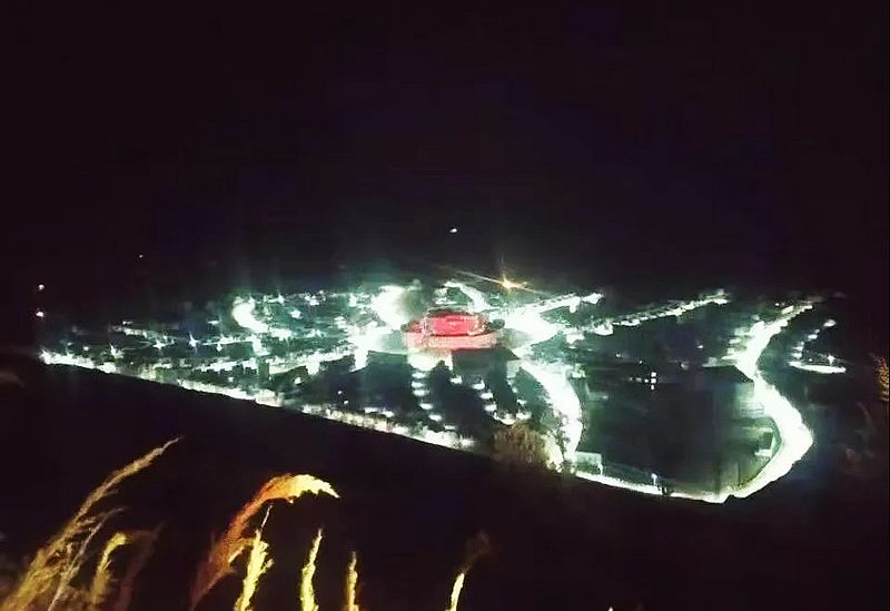 “和我在坪垭的街头走一走,直到所有经幡都飘动才停留,你会挽着我们的手,跟随着火苗舞动...”,夜色如墨,月牙似镰,流云飞走,莲花永驻,在这万籁寂静的藏乡夜晚,路灯亮了,欢快的锅庄跳起来了。