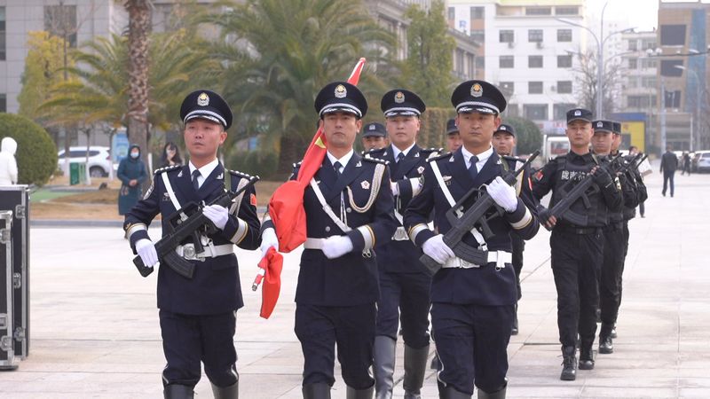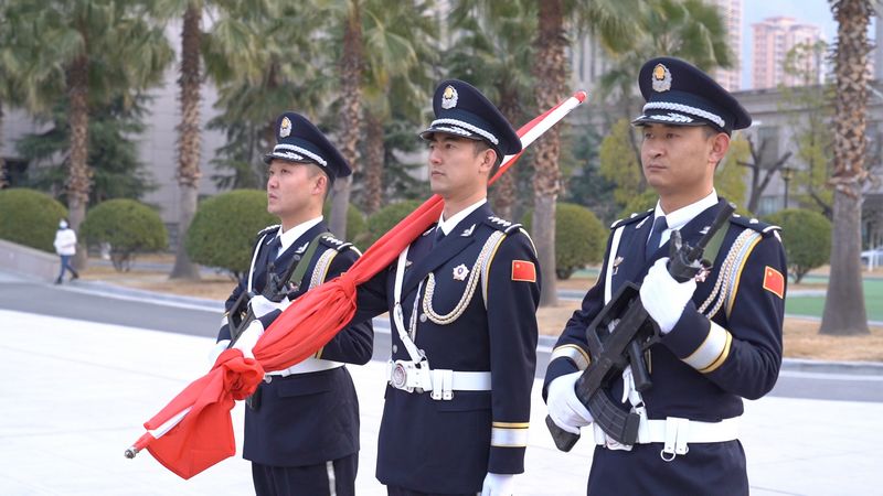 1月10日,东江市政广场市、区两级公安系统举行了2022年第二个“中国人民警察节”,600多名参加仪式的公安民警身着崭新的警礼服整齐列队。由13名公安特警组成的护旗方队,迈着整齐、矫健的步伐护卫国旗走向升旗台。在国歌的庄严乐声中,全体民警肃立注目,向国旗致以崇高的敬礼,并齐声高唱《中国人民共和国国歌》。随后,全体民警高举右拳,重温《公安机关人民警察誓词》。誓词铿锵有力,响彻天际,精神昂扬豪迈,信念愈加坚定。
