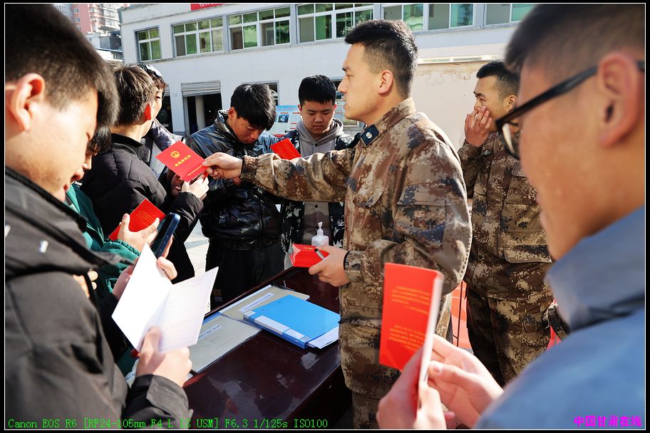 中国甘肃在线文县讯 陇南市文县第三中学石坊镇学生陈鑫现场第一个完成了兵役登记并拿到文县人民政府征兵办公室颁发的《兵役登记证》,他说我一定要好好学习,争取大学毕业后以高学历的身份去投身军营,报效祖国。兵役登记现场,还有许多有志青年进行现场报名,咨询今年体检、政审、役前教育训练的情况。