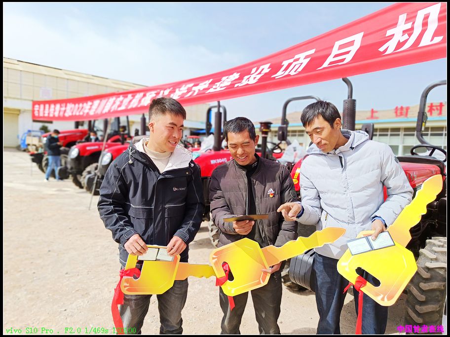 中国甘肃在线宕昌讯 “这‘铁牛’攒劲的很!种地肯定省时、省力、轻便、效率高……”3月29日,在宕昌县三年培增计划2022年农业机械化提升建设项目机具发放仪式上,理川镇苏都村种粮农民后鹏辉从县农机化服务中心主任冲举明手中接过零元购机的东方红1404拖拉机上的一把“金钥匙”后高兴的说。