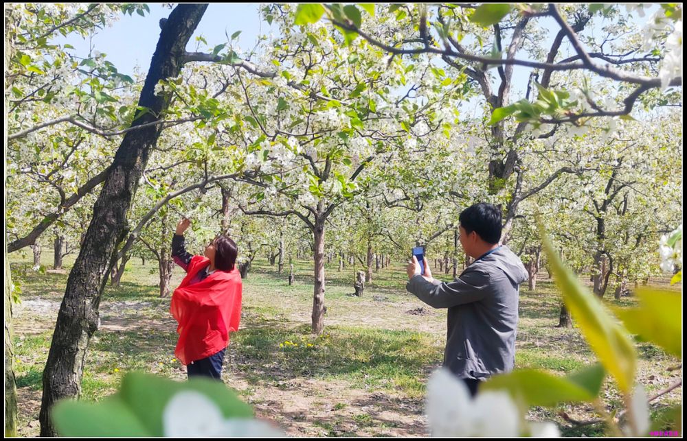 中国甘肃在线礼县讯 4月10日,礼县永兴镇友好村的200多亩梨花悄然绽放,傲立枝头,构成一幅幅如玉似雪的春日梨花图,自信心不少游客前来赏花拍照游玩。王书昉 摄