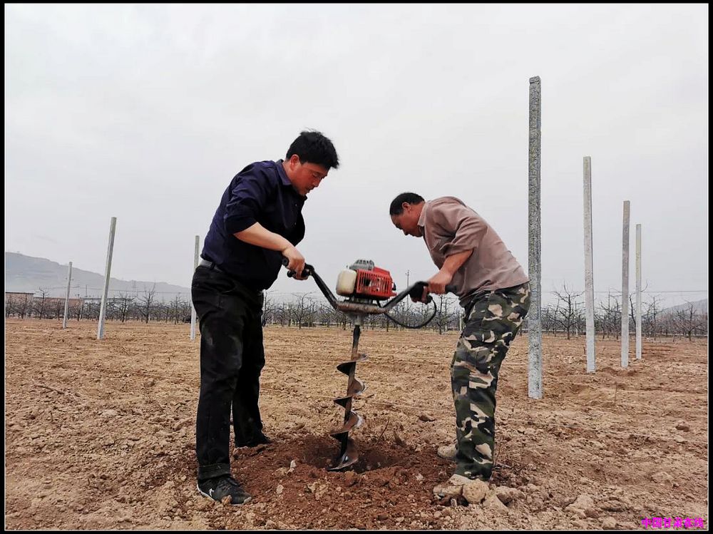 这是金硕香种植养殖专业合作社矮砧密植苹果示范园建成的第二年,村民们挂果丰收的美好期盼越来越近了。而在果树行间的空地里,一片片绿油油的蒜苗已然蓄势待发,生机盎然的田野上孕育着丰收的希望。“今年我的果树就要开始挂果了,为了提高土地利用率,我还在果树两边的地里种了大蒜,争取多挣一些钱”。合作社负责人王永生笑着告诉记者。临近傍晚,在同为苹果大镇的祁山镇,占地150亩的赵家村矮砧密植苹果园仍在紧锣密鼓的建设中,轰隆隆的钻地机在地上掘出了一个又一个深坑,村民们互相协作齐头并进,不一会儿一根根立柱就在大地上“生根发芽”。赵家村村委会副主任独小林说:“我们赵家村之前的这片苹果园,品种已经老化了,经济效益大幅下滑,现在我们在这片土地上修建一个矮砧密植苹果示范园,这个项目是依托甘肃省农业优势特色产业三年倍增行动计划政策,在县乡两级政府大力支持下建成的。项目同步配备滴灌系统,去年秋季已完成整地,计划今年4月中旬完工,建成后初果期亩产约2000元,盛果期亩产可万元以上,真正带动我们全村的经济发展。”