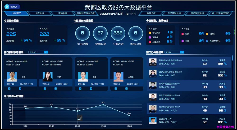 中国甘肃在线武都讯(通讯员 白雪茹 谯 璐)今年以来,武都区政务服务中心认真落实省、市和区委区政府关于数字政府建设部署要求,聚焦政务服务新旧系统转换、“一体化政务平台”建设、政务大数据、事项梳理等领域持续发力,全力推进数字政府一体化政务服务平台上线运行,为打造优质、高效、便民的政务服务提供了重要支撑。