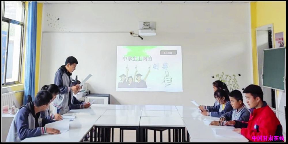 遵守规则,辩手登场。 近日,金木学校组织开展了第二届初中生校园辩论赛。 双方参赛队伍在主持人的开场白后,正反方代表各做了限时一分钟的陈词。开篇立论环节,正方简明严谨的阐述"初中生上网利大于弊"这一观点;反方则陈述"初中生上网弊大于利"这一观点。
